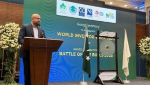 To mark #WorldInvestorWeek2025, a gong ceremony was held at the Pakistan Stock Exchange, where SECP Commissioner Mr. Zeeshan Rehman Khattak, PSX Chairperson Dr. Shamshad Akhtar, and MD PSX Mr. Farrukh Sabzwari highlighted the importance of investor awareness and protection. The event also included the “Battle of the Bulls 2025” award ceremony, celebrating young investors and students. SECP and PSX reaffirmed their commitment to advancing financial literacy and responsible investing nationwide.